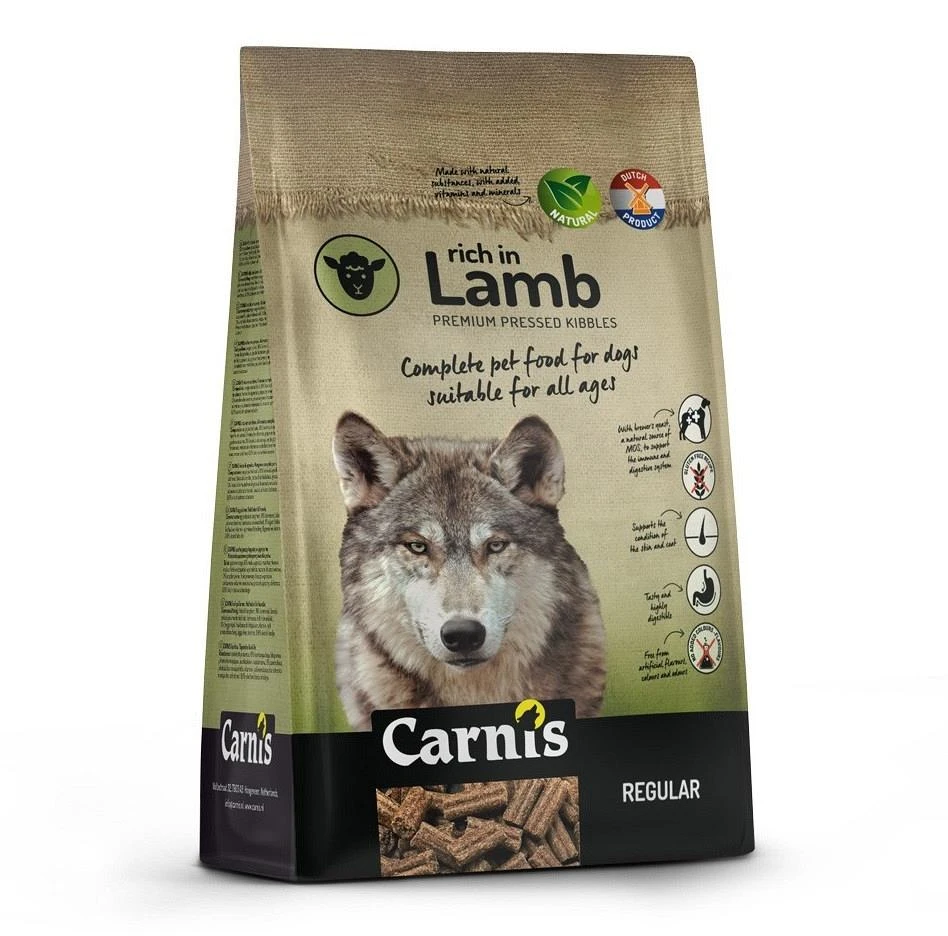 Carnis hondenvoer Lam Regular is een smakelijke en hoogwaardige hondenvoeding op basis van sorghum en is rijk aan lam. De voeding is geschikt voor honden van middelgrote tot grote rassen van alle leeftijden. Elk geperst brokje zit bomvol natuurlijke ingrediënten om jouw hond gezond te houden en met smaak te laten eten. Daarnaast bevat de voeding geen kunstmatige geur-, kleur- en smaakstoffen en is deze ontwikkeld op basis van een tarweglutenvrije receptuur.