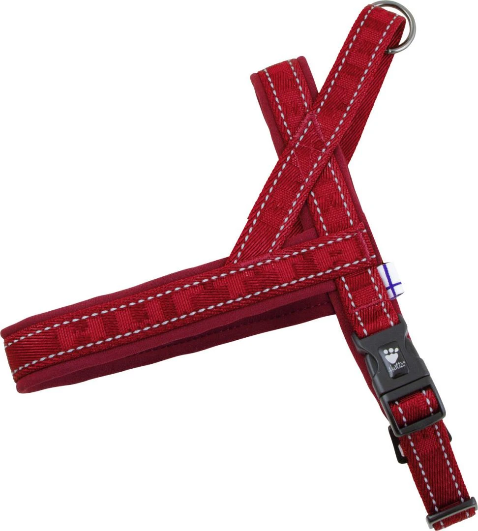 Het Hurtta Casual harnas is gemaakt van nylon en heeft een zacht neopreen afwerking. Er zit een handvat op de rug met een ring om de hond aan te lijnen. Eenvoudig aan en af te doen, met verstelbare band onder de borstkas door.