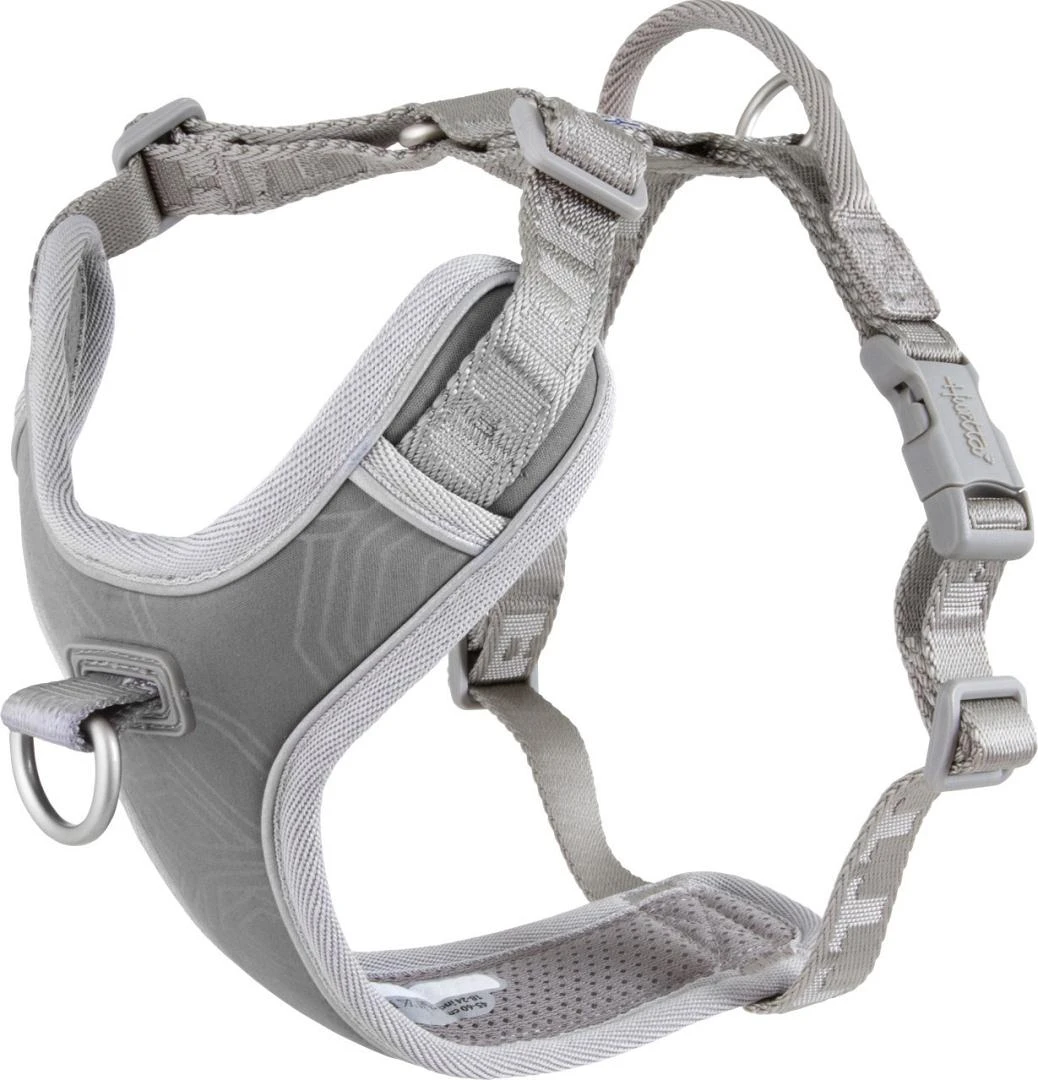 Het harnas is uitermate geschikt voor dagelijkse wandelingen en actieve honden en baasjes. De twee gespen op het verstelbare borstgedeelte zorgen dat het tuig zeer gemakkelijk aan te passen is. Ook is er de mogelijkheid het tuig te stellen rond de nek op twee plaatsen, wat het tuig geschikt maakt voor veel verschillende rassen. Aan de binnenzijde is het mogelijk om jouw gegevens te noteren voor het geval je hond onverhoopt kwijtraakt. Het ademende mesh-materiaal van de voering voorkomt schuren en zweten, waardoor het harnas aangenaam te dragen is.