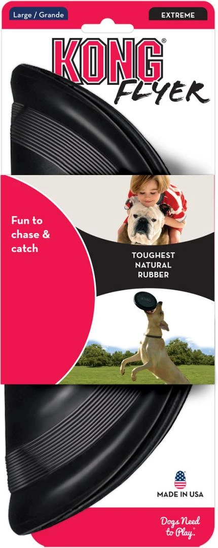 De Kong Extreme Flyer is gemaakt van ultra-onverslijtbaar Extreme rubber en biedt het hoofd aan de strenge eisen van zelfs de meest enthousiaste hond. De Extreme Flyer is flexibel genoeg om te worden opgevouwen en gemakkelijk te worden meegenomen, maar is stug genoeg om te vliegen, en is daarom perfect voor actieve honden.