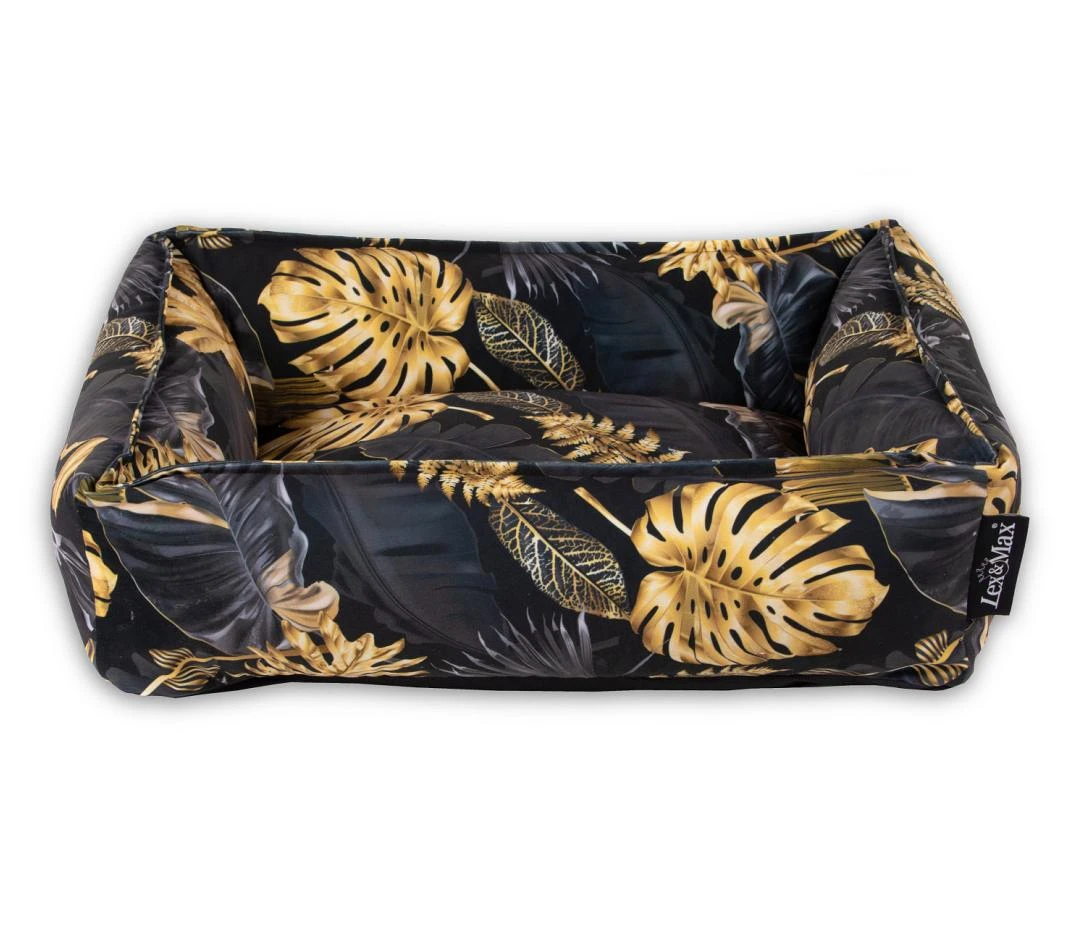 De Lex & Max Hondenmand Dubai is een prachtige stijlvolle mand met stevige opstaande wanden. De wanden zijn gevuld met schuim granulaat zodat jouw hond er heerlijk tegenaan kan liggen of zijn kop er op kan laten rusten zonder dat het inzakt. Door gebruik te maken van een luxueuze print op fluweelzachte interieurstof is deze mand een stijlvolle eyecatcher in ieder huis.