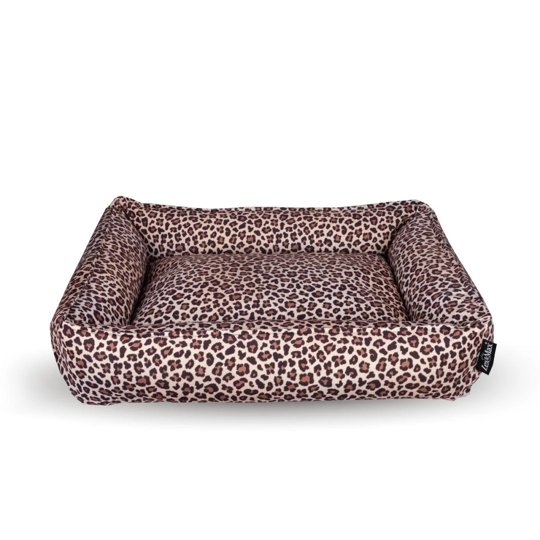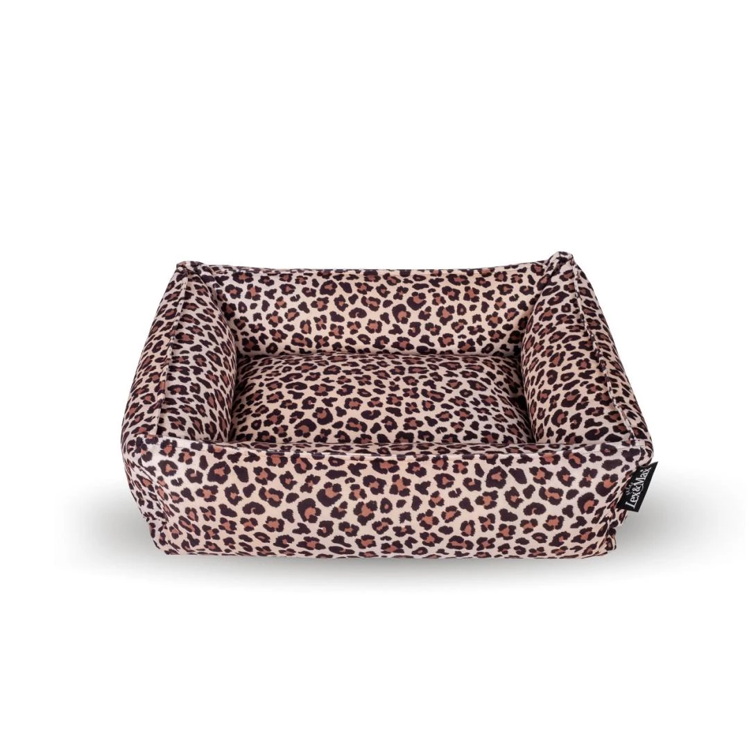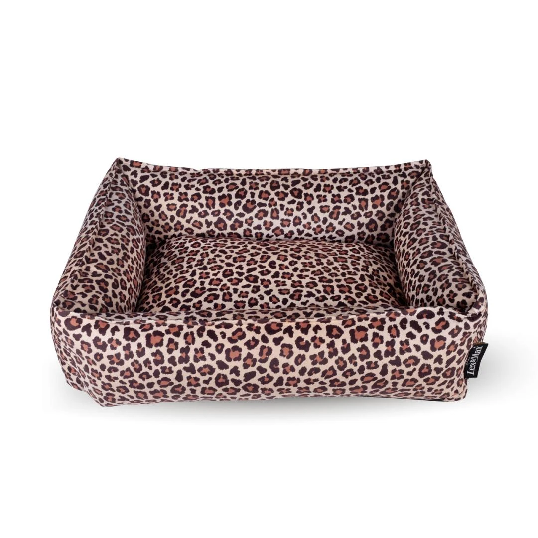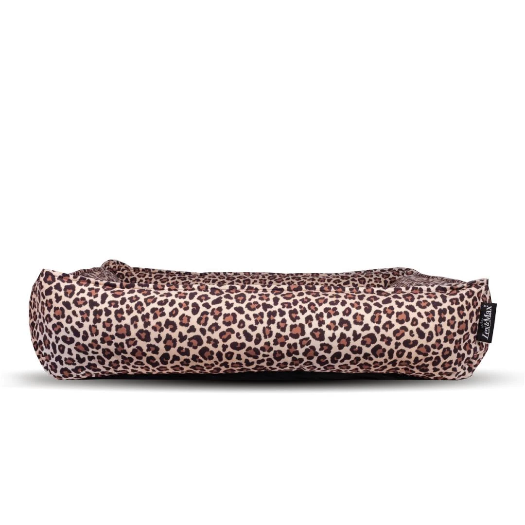 De Lex & Max hondenmand Nairobi is een prachtige mand met stevige opstaande wanden. De wanden zijn gevuld met schuim granulaat zodat jouw hond er heerlijk tegenaan kan liggen of zijn kop er op kan laten rusten zonder dat het inzakt. Door gebruik te maken van een panterprint op fluweelzachte stof is deze mand een hippe eyecatcher in ieder huis.
