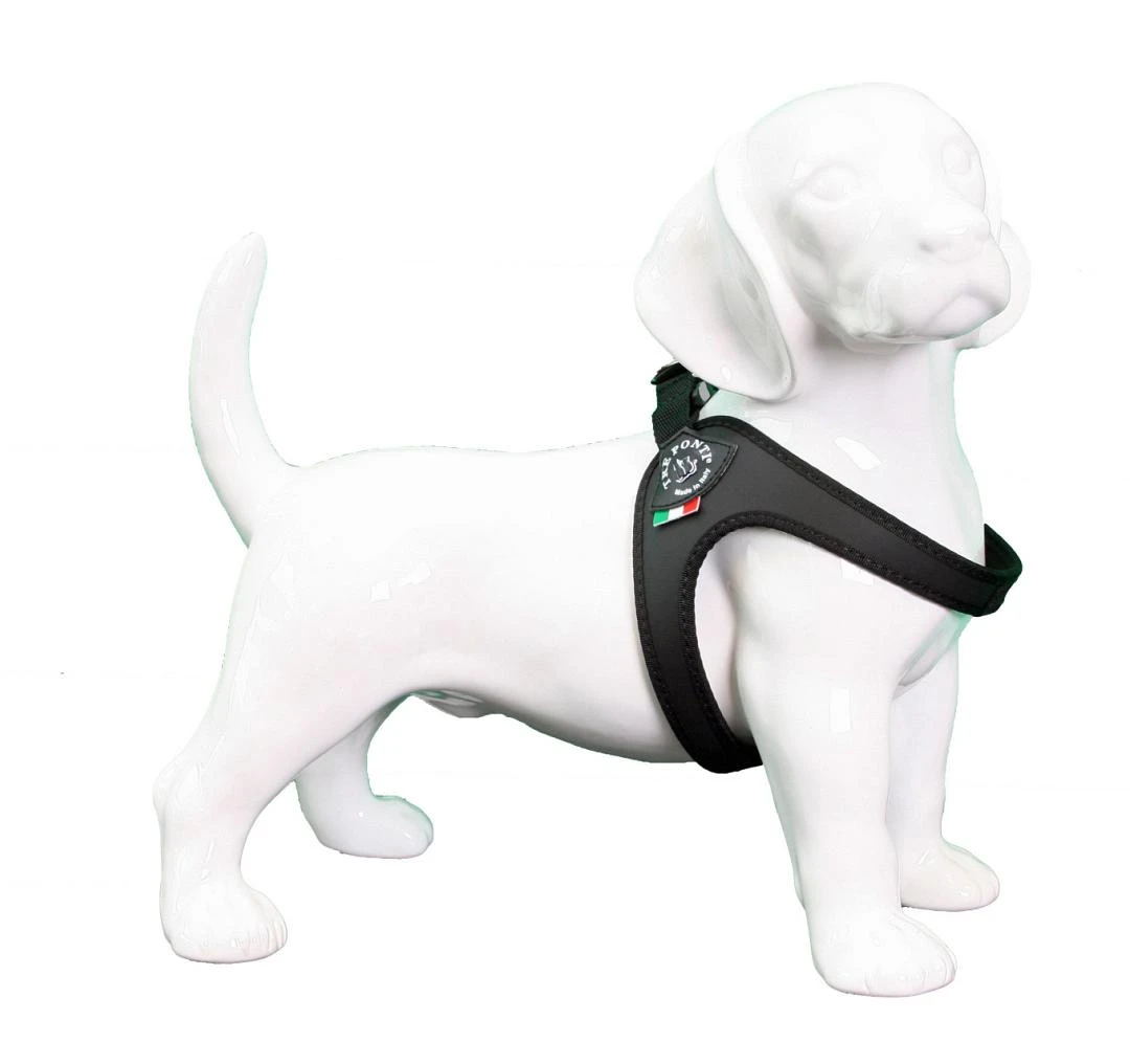 Deze Basic Fibbia tuigen zijn gemaakt van een niet allergisch, vederlicht en duurzaam materiaal. De kern is gevuld met een laag canvas, geen enkele rek dus en oersterk! Het materiaal wordt niet tot nauwelijks nat en houdt geen hondenharen vast. Tre Ponti Fibbia tuigen zijn allen gebaseerd vanuit het idee om de hond een zo optimaal mogelijke bewegingsvrijheid te verlenen tijdens het gebruik van de tuigen, zonder enige druk, wrijving bij de oksels en vorm van obstructie van de bewegende delen van de hond. Deze tuigjes duwen nergens op negatieve drukpunten en ontzien hierdoor ook honden met rug- en gewrichtsproblemen.Â